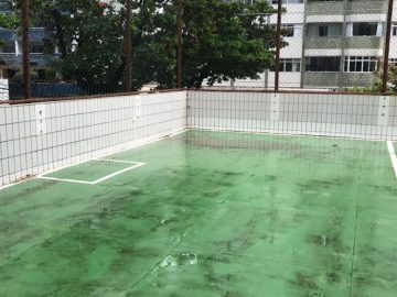 Não importa o dia da semana ou a hora do dia, sempre há alguém na quadra poliesportiva do Condomínio do Edifício Parador de Castilha. A área é iluminada e possui chão de grama sintética, além de uma rede de proteção. É um ótimo lugar para praticar futebol, vôlei ou basquete