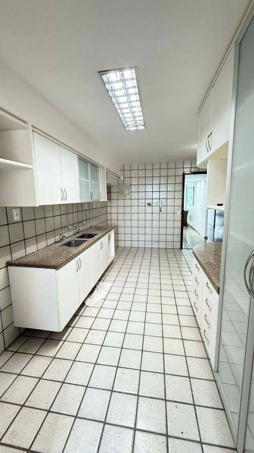 A cozinha, funcional e bem equipada, é um convite à criação de momentos gastronômicos inesquecíveis. Além disso, o apartamento dispõe de dependência de empregada, área de serviço e 3 vagas de garagem para sua total comodidade.