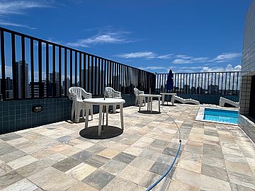 Há também um belo jardim na entrada do Golden Stone para lhe dar as boas vindas; uma portaria permanente que lhe oferece segurança a qualquer hora que você chegar; e para relaxar, na cobertura do prédio, você terá a piscina com cadeiras e guarda-sol em uma ampla área onde você poderá apreciar a bela vista do mar.
