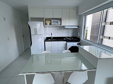 O apartamento, completamente mobiliado, dispõe de 1 dormitório, 1 banheiro e 1 vaga de garagem, além de uma sala funcional, ideal para otimizar seu dia a dia. A cozinha americana integrada ao ambiente social proporciona um espaço moderno e convidativo.