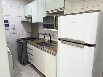 Desfrute de um dormitório aconchegante, sendo uma suíte elegante, e um banheiro bem distribuído. As duas salas proporcionam ambientes distintos para relaxar e receber. A cozinha americana, equipada com fogão, geladeira e microondas, otimiza o espaço e facilita o dia a dia.
