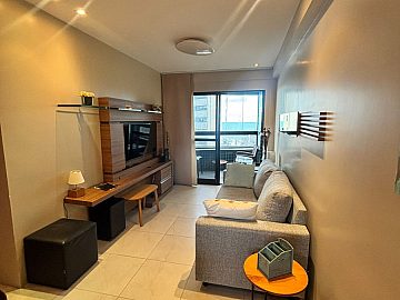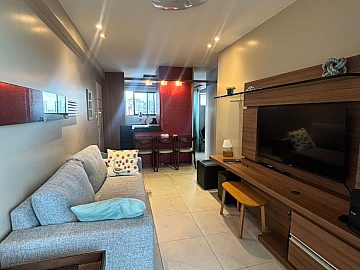 O apartamento, com área privativa de 55m², possui uma planta otimizada e funcional. A unidade é composta por dois dormitórios, sendo uma suíte, e dois banheiros no total. O ambiente social integra duas salas e uma cozinha americana, favorecendo a amplitude e a ventilação natural. O imóvel é comercializado no formato semimobiliado, o que acelera o processo de ocupação ou locação. Destaque para a varanda e a sacada, que proporcionam uma vista panorâmica privilegiada da região.
