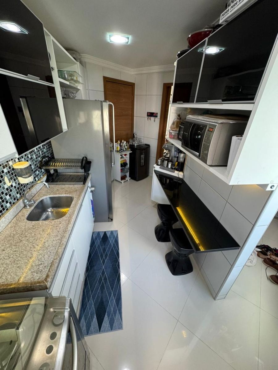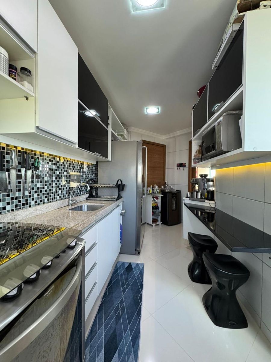 Com uma área privativa de 80m² muito bem distribuída, a unidade destaca-se por ser comercializada totalmente mobiliada, o que viabiliza uma ocupação imediata ou a rápida colocação do ativo no mercado de locação. A planta é composta por 3 dormitórios, sendo 1 suíte, garantindo privacidade e conforto. O imóvel conta com duas salas amplas, sacada com vista panorâmica e um total de 3 banheiros. A infraestrutura de serviço é completa, incluindo área de serviço com banheiro e dependência de empregada. Para maior comodidade urbana, a unidade dispõe de 2 vagas de garagem.