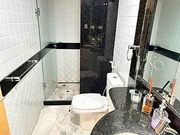 A unidade possui uma área privativa de 160 m², distribuída de forma inteligente para maximizar o conforto e a funcionalidade. O imóvel conta com quatro dormitórios, sendo duas suítes, além de duas salas amplas que permitem a criação de ambientes distintos para convivência e jantar. O apartamento é entregue semimobiliado, facilitando a transição para o novo proprietário. A planta ainda contempla quatro banheiros, área de serviço completa com banheiro e dependência de empregada, atendendo plenamente às demandas de uma residência de alto padrão.