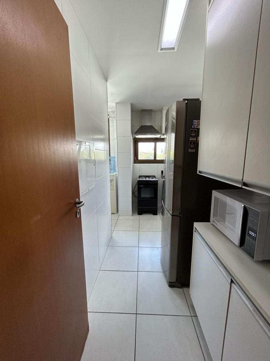 A área íntima é composta por três dormitórios, sendo uma suíte projetada para ser um verdadeiro santuário de descanso. Com três banheiros e um lavabo adicional, o layout prioriza a privacidade e a funcionalidade para toda a família. A conveniência se estende à área de serviço completa, que conta com dependência de empregada e banheiro próprio, garantindo organização ao cotidiano.
