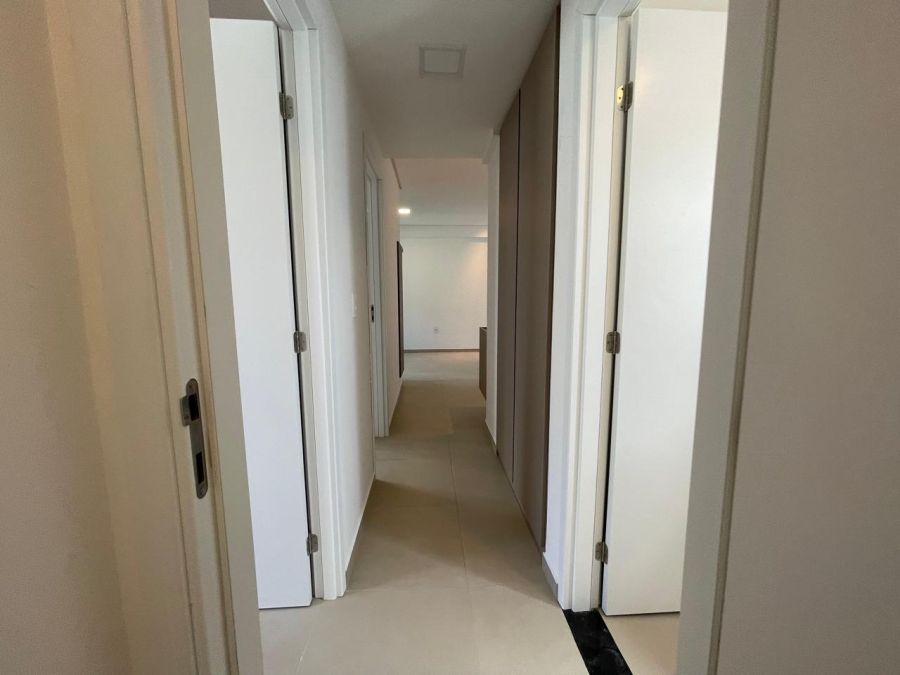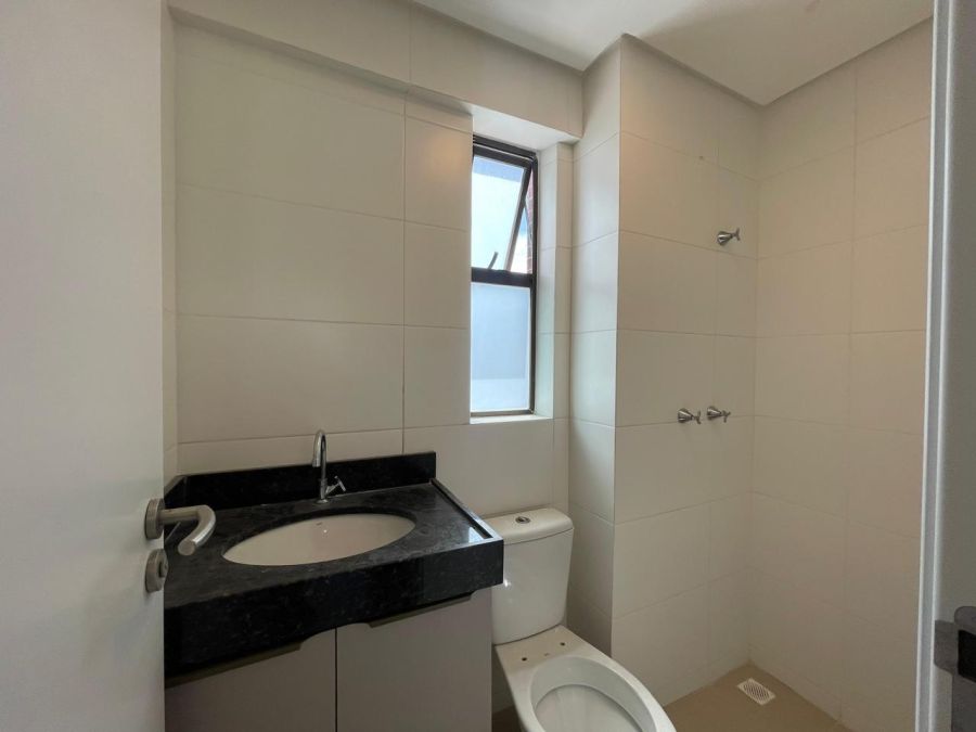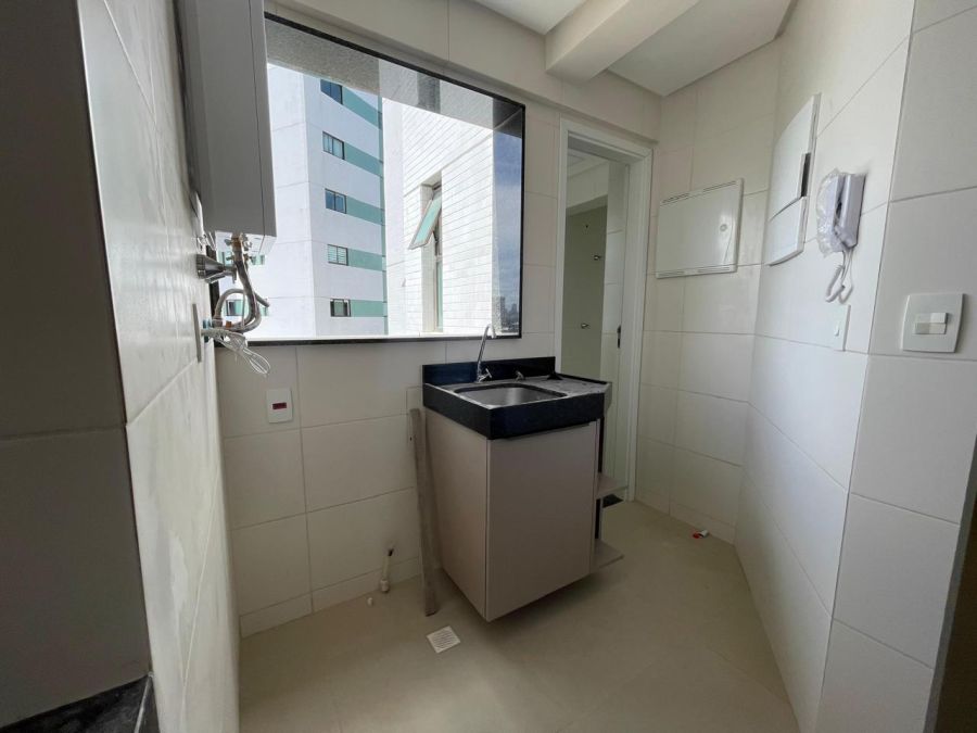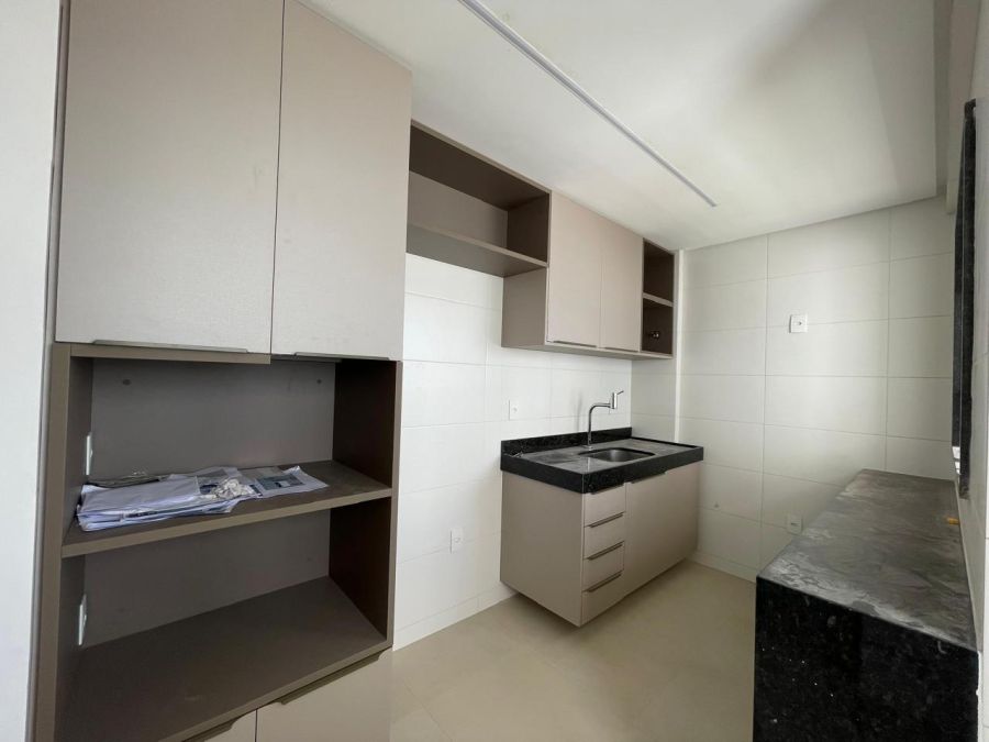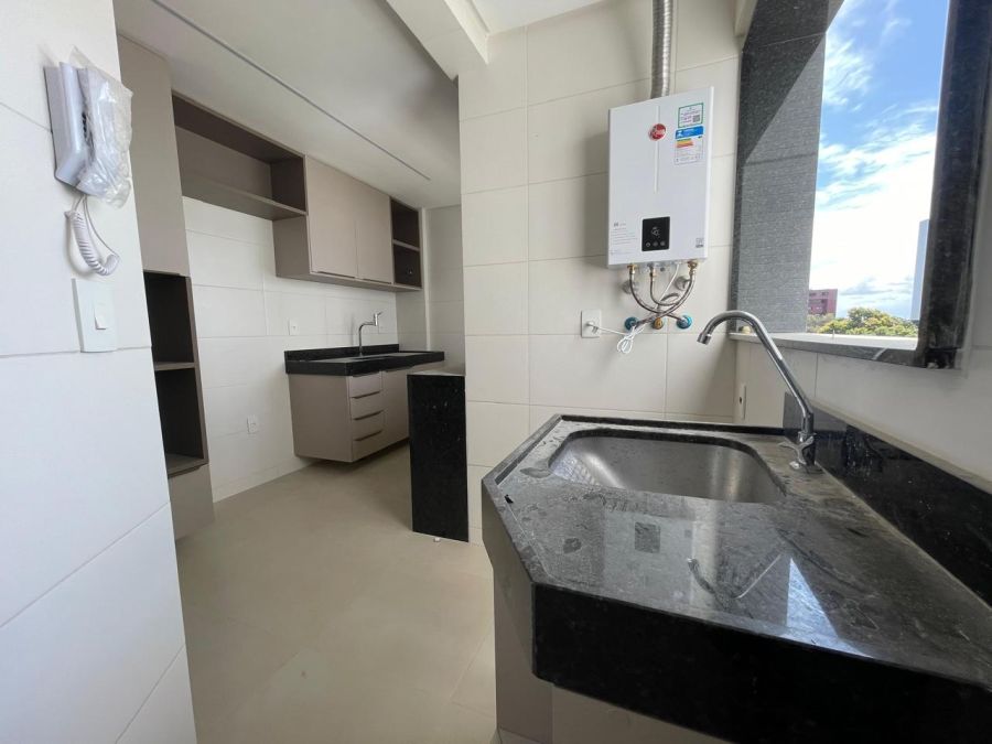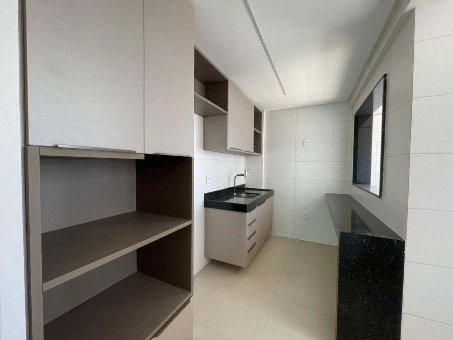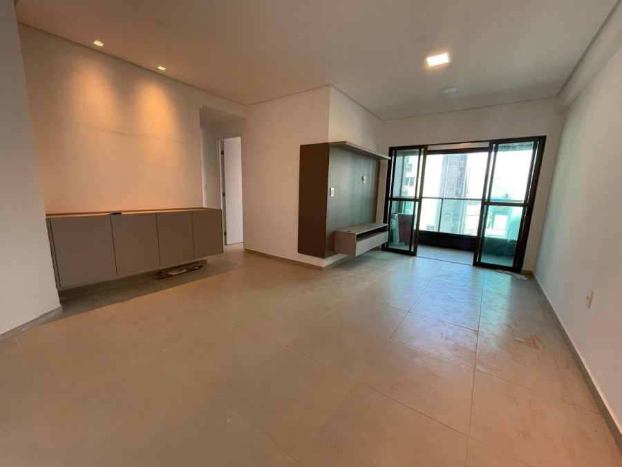 O imóvel dispõe de três dormitórios, sendo uma suíte, totalizando três banheiros. A área social é composta por uma sala ampla integrada à varanda, proporcionando ventilação natural e iluminação externa. A cozinha é complementada por uma área de serviço e dependência de empregada, garantindo organização ao cotidiano. O apartamento conta ainda com ar-condicionado instalado e duas vagas de garagem privativas.