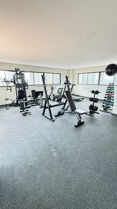 A infraestrutura do condomínio é completa e focada no bem-estar dos moradores. O edifício oferece portaria 24 horas, garantindo segurança e controle de acesso, além de uma vaga de garagem privativa. Para o lazer e saúde, o empreendimento dispõe de academia equipada, espaço gourmet, salão de festas e área de serviço funcional. O condomínio também permite a presença de animais de estimação.